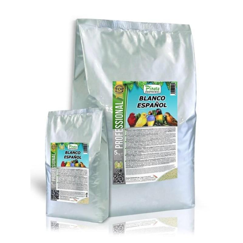 Blanco Español Optimiza la pigmentación de los canarios rojos alas blancas, rojo mosaicos etc. También recomendada para los canarios amarillos alas blancas, amarillos mosaicos, amarillos, etc. No contiene ni colorantes ni ingredientes que podría alterar el color natural del plumaje